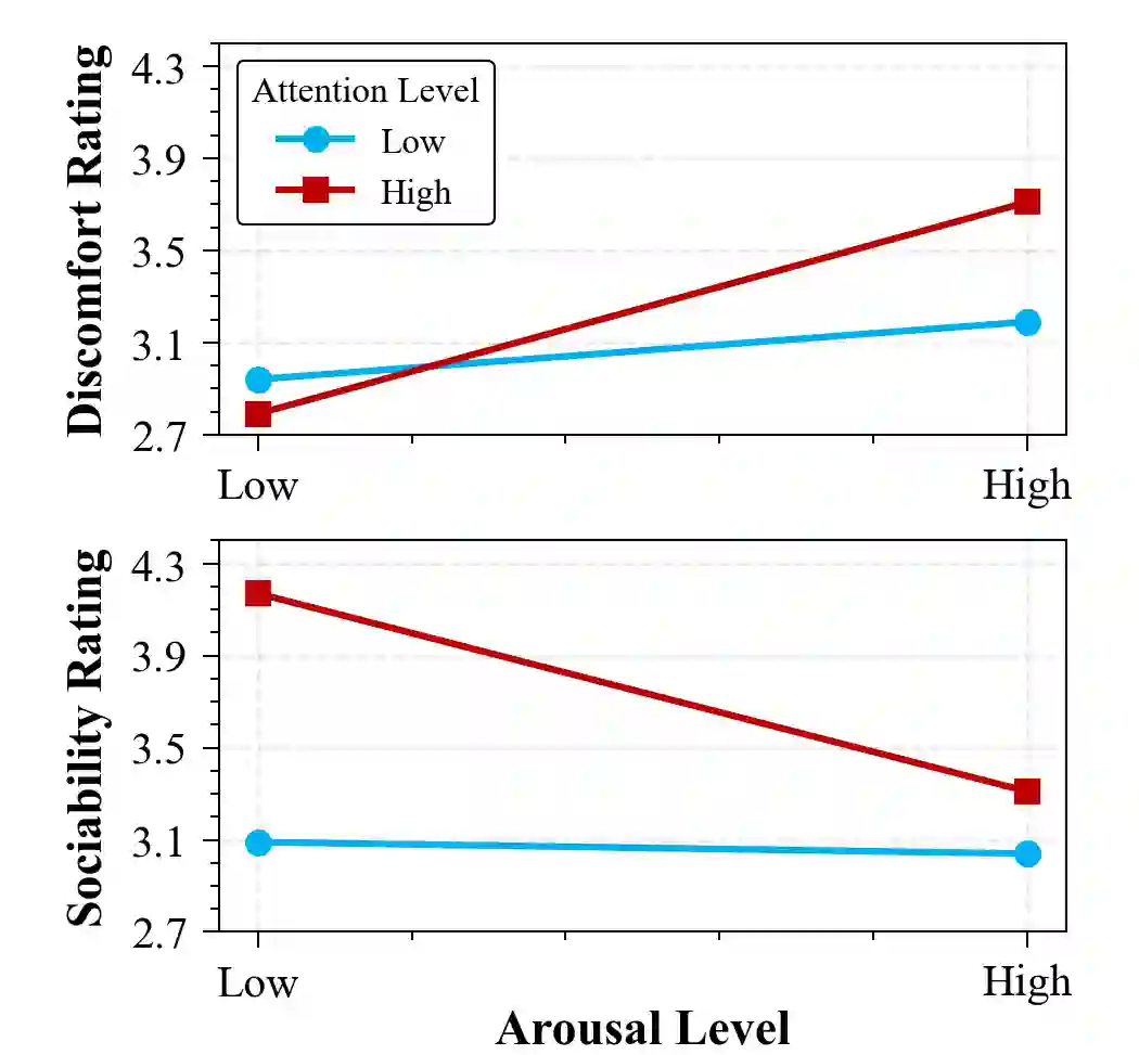 This study explores how human perceptions of a non-anthropomorphic robotic manipulator are shaped by two key dimensions of behaviour: arousal, defined as the robot's movement energy and expressiveness, and attention, defined as the robot's capacity to selectively orient toward and engage with a user. We introduce a novel control architecture that integrates a gaze-like attention engine with an arousal-modulated motion system to generate socially meaningful behaviours. In a user study, we find that robots exhibiting high attention -- actively directing their focus toward users -- are perceived as warmer and more competent, intentional, and lifelike. In contrast, high arousal -- characterized by fast, expansive, and energetic motions -- increases perceptions of discomfort and disturbance. Importantly, a combination of focused attention and moderate arousal yields the highest ratings of trust and sociability, while excessive arousal diminishes social engagement. These findings offer design insights for endowing non-humanoid robots with expressive, intuitive behaviours that support more natural human-robot interaction.