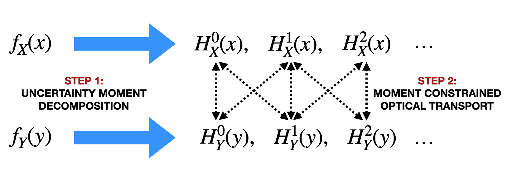 翻译:在统计和机器学习的许多应用中,必须可靠地测量变量之间的依赖性。目前的依赖性估计方法,特别是基于密度的方法,缺乏精确性、稳健性和/或可解释性(估计依赖性的类型)。我们提出在随机变量之间依赖性量化的两步方法:1) 我们首先分解在多个局部不确定时刻所涉变量的概率密度功能(PDFF),这些不确定性时刻系统、准确地确定PDF的不同区域(特别侧重于尾部区域)。2 我们随后计算出一个最佳运输图,以测量各套对应的变数不相容的本地不确定时刻之间的几何相似性。然后,根据最佳运输图中各变数的不确定时刻之间的一对一对应程度来确定依赖性。我们利用最近推出的高斯再生产内尔伯特空间(RKHS)框架来系统多移动性不确定性解析。基于Gaussian RKHS,我们的方法非常稳健地对数据外端和单项变换。我们用多种不确定性模型来解释数据依赖性。