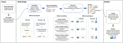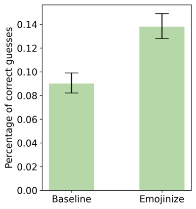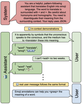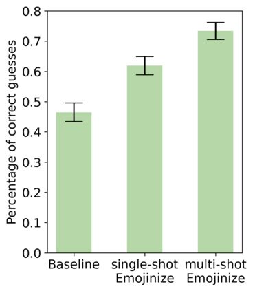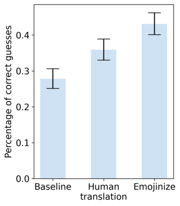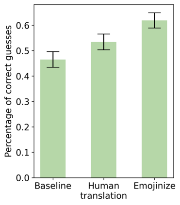 Emoji have become ubiquitous in written communication, on the Web and beyond. They can emphasize or clarify emotions, add details to conversations, or simply serve decorative purposes. This casual use, however, barely scratches the surface of the expressive power of emoji. To further unleash this power, we present Emojinize, a method for translating arbitrary text phrases into sequences of one or more emoji without requiring human input. By leveraging the power of large language models, Emojinize can choose appropriate emoji by disambiguating based on context (eg, cricket-bat vs bat) and can express complex concepts compositionally by combining multiple emoji (eq, ''Emojinize'' is translated to input-latin-letters right-arrow grinning-face). In a cloze test--based user study, we show that Emojinize's emoji translations increase the human guessability of masked words by 55%, whereas human-picked emoji translations do so by only 29%. These results suggest that emoji provide a sufficiently rich vocabulary to accurately translate a wide variety of words. Moreover, annotating words and phrases with Emojinize's emoji translations opens the door to numerous downstream applications, including children learning how to read, adults learning foreign languages, and text understanding for people with learning disabilities.