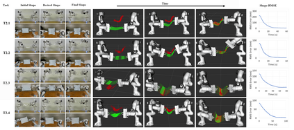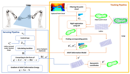 翻译:在本文中, 我们提出一个通用的统一跟踪- 观察方法, 用于控制使用机器人臂控制弹性变形物体的形状。 我们的方法是围绕天体形成一个螺旋形, 将天体绑紧到天体上, 并跟踪和复制天体, 而不是天体。 这样, 我们的方法对任何一般形式的变形物体( 线形、 薄壳、 体积) 都有完全的 3D 控制。 此外, 它使天体的运行时间复杂性与天体的几何复杂度脱钩 。 我们的方法基于 As- Rigid- As- possib( ARAP) 变形模型。 它不需要该天体的机械参数, 并且能够通过大型变形来驱动天体。 我们的方法的输入是天体表面的点云, 以及每个框架的3D 相机所捕捉到的点云。 总体而言, 我们的方法比现有的方法更加广泛适用。 我们验证了我们的方法的效率, 我们的方法是通过不同形状和材料的变形物体进行无数的实验( 纸质/ 软体体/ 软体/ 实验性网站 。 。