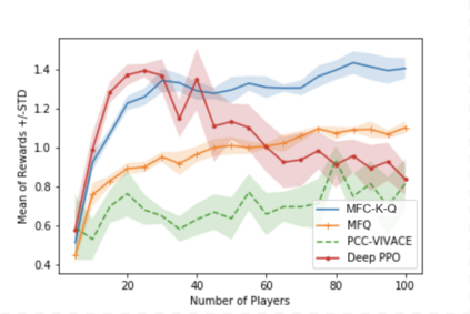 翻译:多剂强化学习(MARL)尽管广受欢迎,也取得了成功,但却受到多元性的诅咒。本文构建了数学框架,以中场控制(MRC)法来将合作MARL(MFC)近似于合作MARL(MFC),并显示近似误差为$mathcal{O}(\frac{1unsqrt{N ⁇ }}(frac{1unsqrt{N ⁇ )美元。通过为价值函数和Q函数建立适当的动态编程原则形式,它提议了一种无模型内核Q-学习算法(MFC-K-Q),该算法显示MFC问题的线性趋同率是MFC-K-Q在MARL文献中首例的趋同率。它进一步确定MFC-K-Q的趋同率和样本复杂度独立于代理商数量$N$(fCFC-K-Q)以外的代理商,而现有的MAL算法则是大时MFC-50美元。