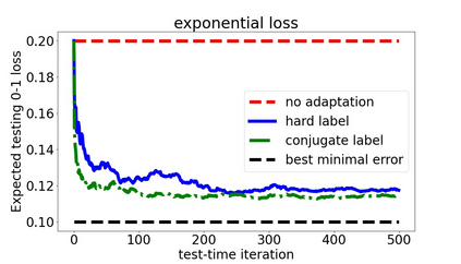 翻译:我们认为一个模型需要适应分布变换下的新域的设置, 因为在测试时, 只有新域的未贴标签测试样本才能进入新的域块。 大多数相关工程的共同理念是为未贴标签的试样建立假标签, 并将梯度下降( GD) 应用于假标签的损失函数。 最近, Goyal 等人( 2022) 提出了同级标签, 这是测试时用于自我培训的一种新型假标签。 它们的经验显示, 共标标签比其他伪标签方法要优于许多域域适应基准上的假标签。 然而, 相关工程的一个常见想法是, 为未贴标签的试样样本制作假标签的GD 学习一个良好的分类器, 并将梯度下降( GG) 应用到一个假标签上。 我们的目标是从理论上去理解GD, 硬标签标签上的同级标签。 我们用同级标签上的GD 标签会集中到一个解决方案, 将测试0-1损失降到最小, 而 GD 则用硬质标签在任务上更新结果。