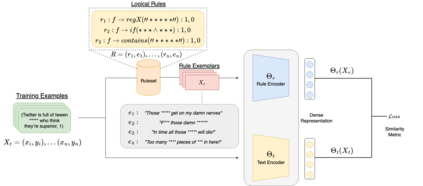Classic approaches to content moderation typically apply a rule-based heuristic approach to flag content. While rules are easily customizable and intuitive for humans to interpret, they are inherently fragile and lack the flexibility or robustness needed to moderate the vast amount of undesirable content found online today. Recent advances in deep learning have demonstrated the promise of using highly effective deep neural models to overcome these challenges. However, despite the improved performance, these data-driven models lack transparency and explainability, often leading to mistrust from everyday users and a lack of adoption by many platforms. In this paper, we present Rule By Example (RBE): a novel exemplar-based contrastive learning approach for learning from logical rules for the task of textual content moderation. RBE is capable of providing rule-grounded predictions, allowing for more explainable and customizable predictions compared to typical deep learning-based approaches. We demonstrate that our approach is capable of learning rich rule embedding representations using only a few data examples. Experimental results on 3 popular hate speech classification datasets show that RBE is able to outperform state-of-the-art deep learning classifiers as well as the use of rules in both supervised and unsupervised settings while providing explainable model predictions via rule-grounding.
