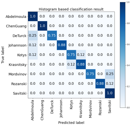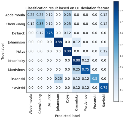 翻译:音乐表演者有他们自己独特的翻译音乐作品的方式。 一组演奏同一音乐的熟练表演者可能会在表演中注入他们独特的艺术风格。 音节、 时间、 动态、 朗声等与实际加注音乐的变异使得表演者在表演中具有独特性。 本研究提供了一套数据集, 由Shubert的“ Sanata in B-plate major, D.960” 的四种运动组成, 由九位音乐家单独演唱。 我们提出并提取了一组能够捕捉到表演者风格特征的直观特征。 我们随后根据特征分布的相似性, 展示出一种表演者识别方法, 并给一组钢琴表演者提供一套性能。 辨识工作是分别考虑每个特征和特征的融合。 研究结果显示, 提议的方法使用聚合特征实现了0. 903 的精确度。 此外, 开始的时间偏差特征显示, 个别考虑时, 会有很有希望的结果 。