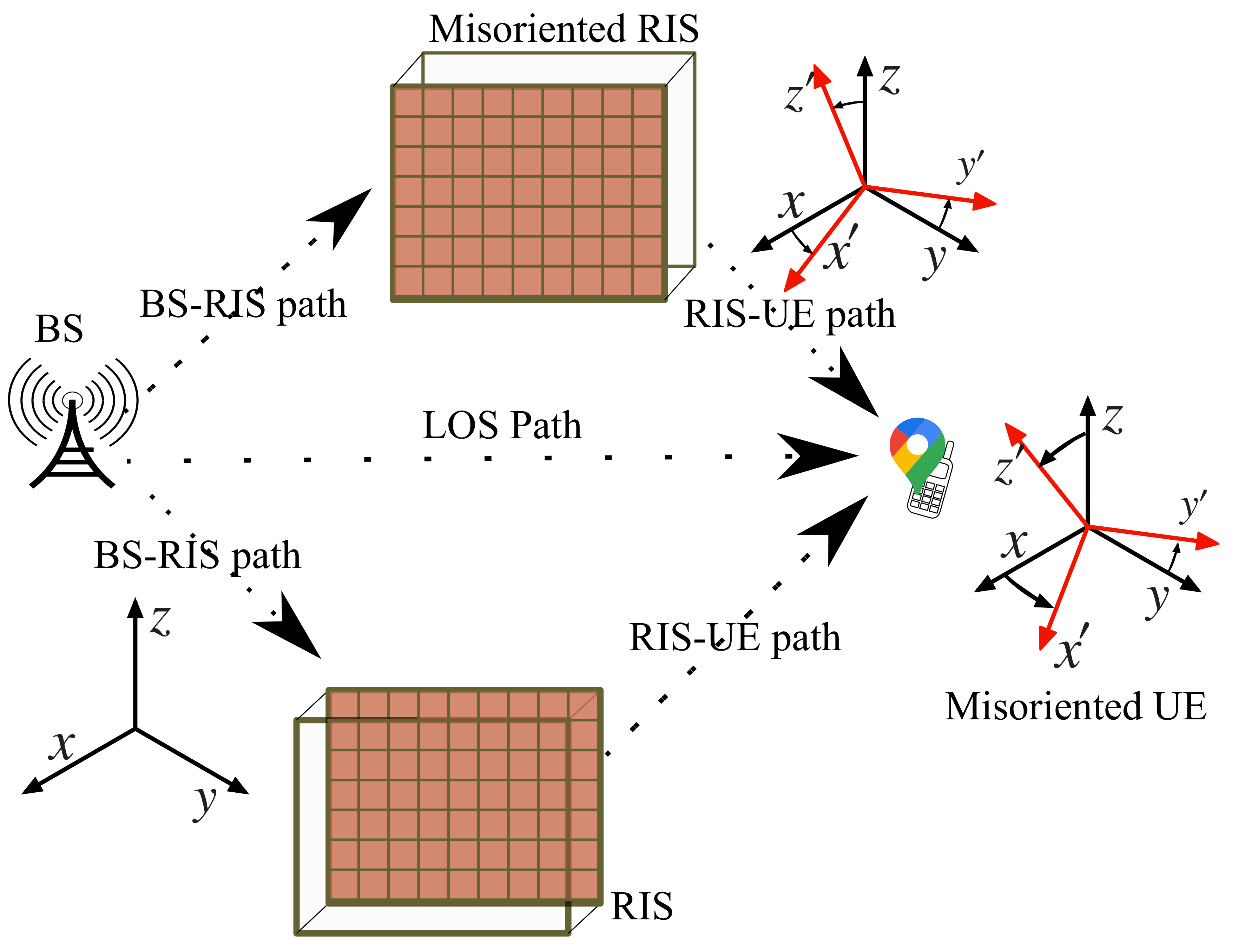 This paper presents a rigorous Bayesian analysis of the information in the signal (consisting of both the line-of-sight (LOS) path and reflections from multiple reconfigurable intelligent surfaces (RISs)) that originate from a single base station (BS) and is received by a user equipment (UE). For a comprehensive Bayesian analysis, both near and far field regimes are considered. The Bayesian analysis views both the location of the RISs and previous information about the UE as {\em a priori} information for UE localization. With outdated {\em a priori} information, the position and orientation offsets of the RISs become parameters that need to be estimated and fed back to the BS for correction. We first show that when the RIS elements have a half wavelength spacing, this RIS orientation offset is a factor in the pathloss of the RIS paths. Subsequently, we show through the Bayesian equivalent Fisher information matrix (EFIM) for the channel parameters that the RIS orientation offset cannot be corrected when there is an unknown phase offset in the received signal in the far-field regime. However, the corresponding EFIM for the channel parameters in the received signal observed in the near-field shows that this unknown phase offset does not hinder the estimation of the RIS orientation offset when the UE has more than one receive antenna. Furthermore, we use the EFIM for the UE location parameters to present bounds for UE localization in the presence of RIS uncertainty.