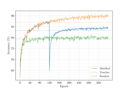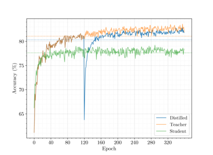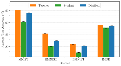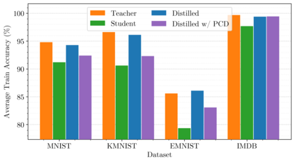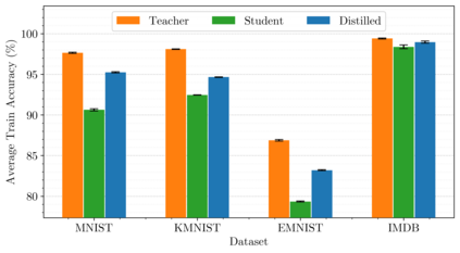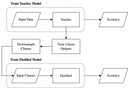 The Tsetlin Machine (TM) is a propositional logic based model that uses conjunctive clauses to learn patterns from data. As with typical neural networks, the performance of a Tsetlin Machine is largely dependent on its parameter count, with a larger number of parameters producing higher accuracy but slower execution. Knowledge distillation in neural networks transfers information from an already-trained teacher model to a smaller student model to increase accuracy in the student without increasing execution time. We propose a novel approach to implementing knowledge distillation in Tsetlin Machines by utilizing the probability distributions of each output sample in the teacher to provide additional context to the student. Additionally, we propose a novel clause-transfer algorithm that weighs the importance of each clause in the teacher and initializes the student with only the most essential data. We find that our algorithm can significantly improve performance in the student model without negatively impacting latency in the tested domains of image recognition and text classification.
