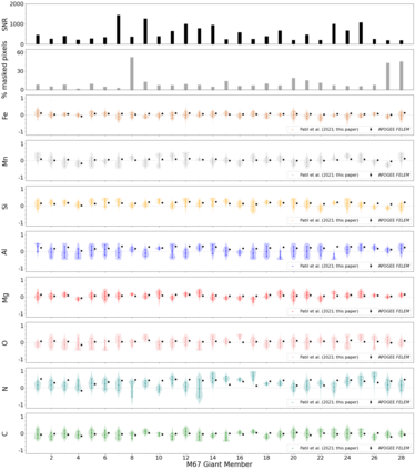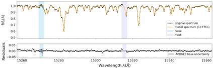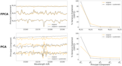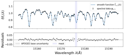 翻译:高分辨率光谱测量 {Nal04{Nalm047} 银河系已进入了大数据系统,并开辟了解决在银河系考古学中未决问题的渠道。然而,充分利用其全部潜力受到复杂的系统化的制约,现代光谱分析没有对其特性给予足够的关注。在这项工作中,我们提出了一个新颖的方法,将恒星固有的光学数据空间部分与系统性分开。在APOGE的18,933美元巨光谱样本中,我们发现,超过观测不确定性水平的内在结构需要$_Approx}10美元功能性主要组成部分。我们的FPC可以降低星光谱的维度,消除系统化,并且能够准确研究恒星层。为了展示我们FPC的实用性,我们用它们来推导出在开放的 m67 组中 28 美元的巨量参数和丰度。我们用Sqernal 类似值,一个模拟的Bayescial dismal dismlate 方法, 能够学习恒度的内分解磁值。