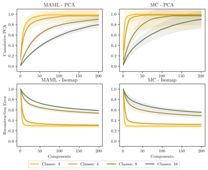 翻译:在这项工作中,我们分析了基于梯度的元数据学习方法(GBML)的适应后参数的分布情况。先前的工作注意到,就图像分类而言,这种调整只发生在网络的最后一层。我们提出了更为普遍的概念,即参数是在与任务-空间相同的一个低维/emph{subspace上更新的,并表明这也具有回归性。此外,诱导的子空间结构提供了一种方法,用以估计共同的微小学习数据集任务空间的内在层面。