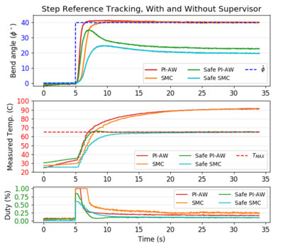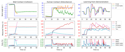 翻译:虽然软机器人比传统机器人显示更安全地与环境互动,但软机械和活化器仍然有很大的破坏或退化潜力,特别是在非改造接触期间。 本条引入了软机器人控制期间安全软活化器操作的反馈战略。 要做到这一点, 监管控制器监测导动器状态和动态饱和控制输入, 以避免可能导致物理损害的条件。 我们证明, 在某些条件下, 监管控制器是稳定和可以核查的安全的。 然后, 我们用一个软热活化的机械控制器, 使用嵌入式内存合机( SMA) 的操作器和感知器, 在船上展示完全的操作功能。 与监管器一起进行的测试可以验证其理论特性, 并显示机器人肢体在自由空间的稳定性。 最后, 实验表明, 我们的方法可以防止接触时过热( 包括环境限制和人类接触), 或当无法操作的动作被控制器被控制器控制时, 以及它完全在机体上被感测到的能力, 我们有可能使软机器人操作器的操作器变得足够可靠, 供实际使用。
