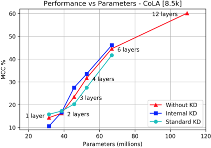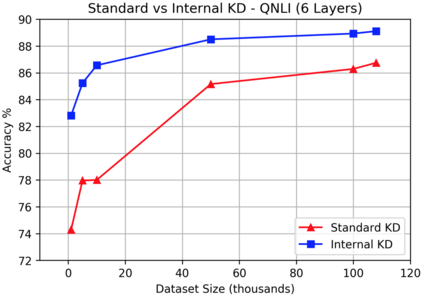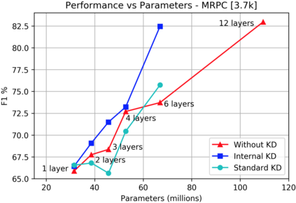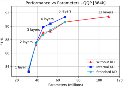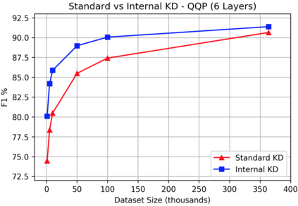 翻译:通常通过培训一个小型模型(学生)来模仿一个庞大和繁琐的模型(教师)来进行知识蒸馏,目的是通过将教师的输出概率作为软标签来压缩教师的知识,优化学生的优化。然而,当教师人数相当大时,无法保证教师的内部知识将转移到学生身上;即使学生与软标签非常接近,其内部表现可能大不相同。这种内部不匹配会损害原来打算从教师转移到学生的概括能力。在本文中,我们提议将一个大型模型(如BERT)的内部表达方式提炼成一个简化版本。我们制定了两种方法来提炼这种表达方式和各种算法来进行蒸馏。我们用GLUE基准的数据集进行实验,并不断表明从内部表述中添加知识提炼是一种比使用软标签蒸馏法更强大的方法。