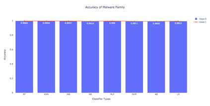 翻译:机器人恶意软件是互联网上最危险的威胁之一, 并且它已经上升了好几年。 尽管在检测和分类方面做出了大量努力, 并且从无害和机器人应用中发现了机器人恶意软件, 但还有很长的路要走。 因此, 需要提供对最常见的和机器人恶意软件类别和家庭所显示的行为的基本理解。 每个和机器人恶意软件家庭和类别有一个截然不同的目标。 结果, 它影响到每个公司领域, 包括医疗保健、 银行、 交通、 政府、 和电子商务。 在本文中, 我们展示了两种用于Andromonard Maware动态分析的机器学习方法: 一种用于检测和识别Android Maware类别, 另一种用于检测和识别Android Maware家庭。 我们的方法是通过分析一个大型恶意软件数据集, 包括14个突出的恶意软件类别以及CCS- CIC- AndMal220 数据组的180个突出的恶意软件家庭。 我们的方法在Android Malaware 类中实现了超过96 % 的精确度检测, 在Androd Mailware Forate器中实现了比99%的精确。 我们的智能智能分析方法也提供了一种高的智能智能智能分析。