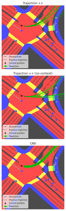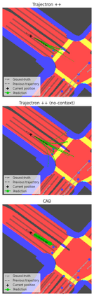 翻译:以学习为基础的轨迹预测模型取得了巨大成功,除了动态历史之外,还有望利用背景信息。然而,我们发现,最先进的预测方法往往过度依赖代理人目前的动态,未能利用其投入所提供的语义背景提示。为了缓解这一问题,我们引入了CAB, 即一个具有培训程序、旨在推广使用语义背景信息的运动预测模型。我们还引入了两种新型指标——分散和趋同——以衡量连续预测的时间一致性,我们发现在标准指标中缺少这些预测。我们的方法是根据广泛采用的 nuScenes 预测基准以及该基准中最困难的一组例子进行评估的。该代码可在 guthub.com/valeoai/CAB查阅。