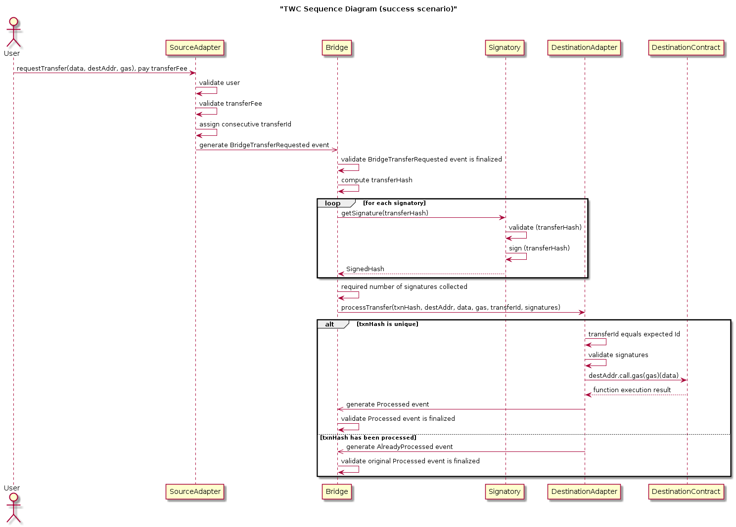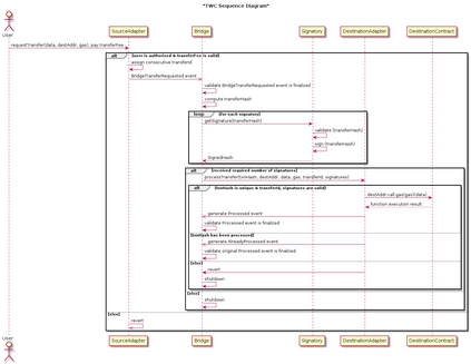 翻译:Transwarp-Conduit(Transwarp-Conduit)(TWC)是两个智能合同启用的块链之间的电文传输协议,此外,我们具体规定了一个应用框架(利用TWC协议),使开发商能够仅仅通过部署符合框架的智能合同和托管TPC节点(守护程序)来定义任意复杂的块链应用程序。