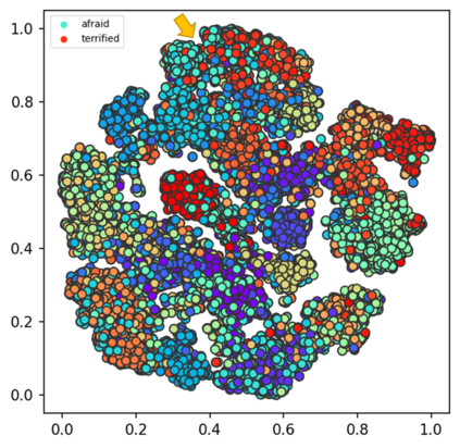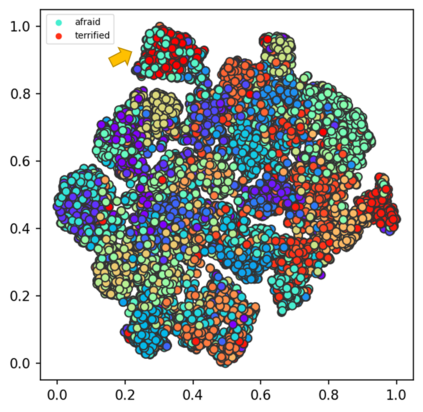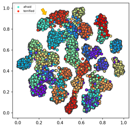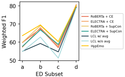 Fine-grained emotion classification (FEC) is a challenging task. Specifically, FEC needs to handle subtle nuance between labels, which can be complex and confusing. Most existing models only address text classification problem in the euclidean space, which we believe may not be the optimal solution as labels of close semantic (e.g., afraid and terrified) may not be differentiated in such space, which harms the performance. In this paper, we propose HypEmo, a novel framework that can integrate hyperbolic embeddings to improve the FEC task. First, we learn label embeddings in the hyperbolic space to better capture their hierarchical structure, and then our model projects contextualized representations to the hyperbolic space to compute the distance between samples and labels. Experimental results show that incorporating such distance to weight cross entropy loss substantially improves the performance with significantly higher efficiency. We evaluate our proposed model on two benchmark datasets and found 4.8% relative improvement compared to the previous state of the art with 43.2% fewer parameters and 76.9% less training time. Code is available at https: //github.com/dinobby/HypEmo.