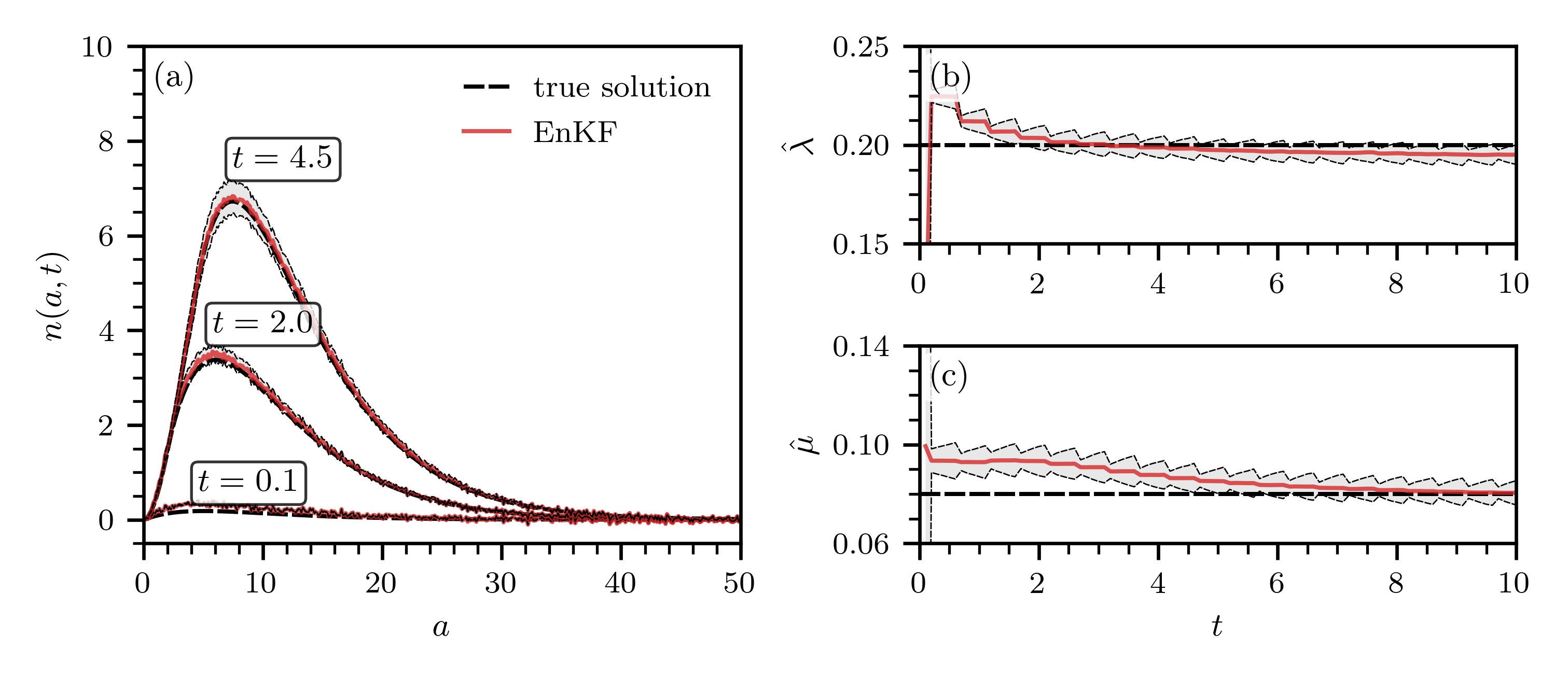 翻译:药物过量死亡在美国所有主要药品类别中继续增加。在过去的20年中,药物过量死亡总数增加了五倍以上;自2013年以来,过量率的激增主要是由芬太尼和甲基苯丙胺驱动的。不同的药品类别和影响药物过量死亡率的因素(如年龄,性别和种族)可能具有不同的特征,并且可能会随着时间而改变。例如,1940年至1990年,药物过量死亡者的平均年龄已经降低,而总体死亡率却稳步增加。为了提供药物成瘾的人群层面的动态,我们开发了一种针对药物成瘾的年龄结构模型。我们使用增广集合卡尔曼滤波器(EnKF)通过一个简单的示例展示了我们的模型如何与合成观测数据相结合,以估计死亡率和年龄分布参数。最后,我们使用EnKF将我们的模型与1999年至2020年美国药物过量死亡的观测数据相结合,预测过量趋势的演变并估计模型参数。
