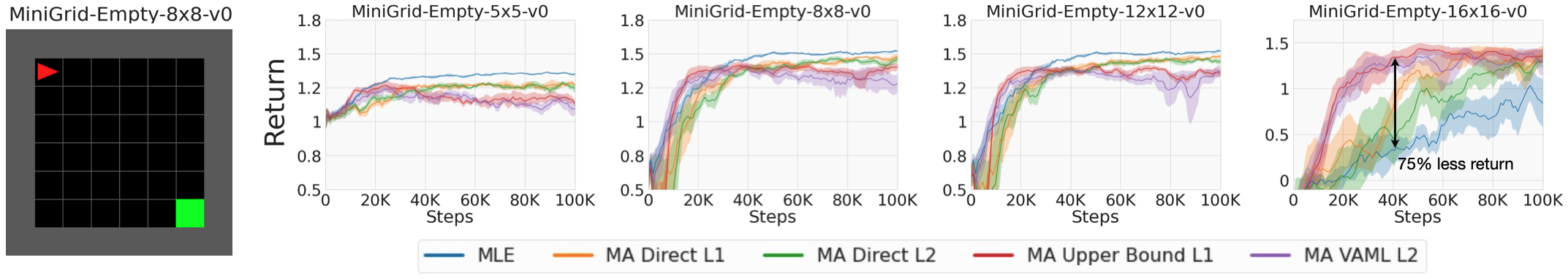 翻译:这项工作表明,以其众多理论利益著称的增值模型学习,在解决流行的基于模型的强化学习算法中具有挑战性的连续控制任务方面,实际上也是可行的。 首先,我们通过将两个模型优势(即模型性能差异)结合到两个模型优势(即模型性能差异)或具有固定政策的模型之间,在最连续的控制环境中实现优于先前的价值认知目标的优异性能,从而在两个模型(SLBO和MBPO)的流行和开放源码RL算法上,在天真地取代价值认知目标,以取代以新式模型为基础的RLL算法中的最大相似性能,从而得出我们的成果,同时在一些环境中,我们提出的解决这一问题的补救办法缩小了在价值认知模型学习理论和实践方面长期存在的差距,使所有价值认知目标能够成功地用于解决若干持续控制的机器人操纵和移动任务。我们的成果是通过对两种基于开放源码的通用RL算法(SLBO和MBO)进行最小的修改而获得的。