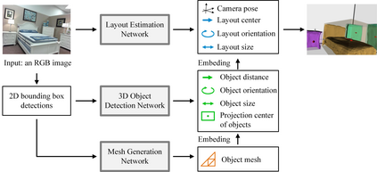 翻译:室内场景的语义重建既指对场景的理解,也指对物体的重建。现有的工程要么针对这一问题的一个部分,要么侧重于独立物体。在本文中,我们弥合了理解和重建之间的差距,并提出了一个从单一图像中联合重建房间布局、物体捆绑框和网目的端到端解决方案。我们的方法不是单独解决对场景的理解和物体重建,而是建立在整体的场景背景之上,并提出了一个粗略到端的层次,包括三个组成部分:1. 装有照相机的房间布局;2. 3D物体捆绑框;3. 物体模件。我们说,了解每个组成部分的背景可以帮助区分其他组成部分,从而能够共同理解和重建。 SUN RGB-D 和 Pix3D 数据集的实验表明,我们的方法始终超越了室内布局估计、3D物体探测和网目重建的现有方法。