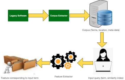 Modern software typically performs more than one functionality. These functionalities or features are not always organized in a way for modules representing these features to be used individually. Many software engineering approaches like programming language constructs, or product line visualization techniques have been proposed to organize projects as modules. Unfortunately, much legacy software suffer from years or decades of improper coding practices that leave the modules in the code almost undetectable. In such scenarios, a desirable requirement is to identify modules representing different features to be extracted. In this paper, we propose a novel approach that combines information retrieval and program analysis approaches to allow domain experts to identify slices of the program that represent modules using natural language search terms. We evaluate our approach by building a proof of concept tool in C, and extract modules from open source projects.