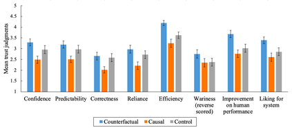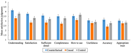 翻译:在大赦国际的决定中,反事实解释越来越多地被用来解决可解释性、追索性和偏见问题,然而,我们不知道反事实解释如何有助于用户理解系统决定,因为没有大规模用户研究将其效力与其他种类的解释如因果解释(在基于规则和决策树模型中,反事实解释的使用记录较长)相比较,也不清楚反事实解释是否对连续性特征具有同等效力,尽管目前的方法假定它们具有连续性。因此,在一项由127名自愿参与者参与的受控用户研究中,我们测试了反事实和因果解释对用户对简单AI系统所作决定预测的客观准确性以及参与者对满意度和信任解释的主观判断的影响。我们发现客观和主观措施之间脱钩:反事实解释使预测的准确性高于不解释控制说明,但准确性不高于因果关系解释,反事实解释比因果解释更令人满意和信任。我们还发现,用户理解关于绝对特征的解释比持续特征的解释更容易理解。我们讨论了这些结论对XAI目前和今后反事实方法的影响。