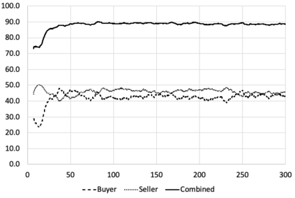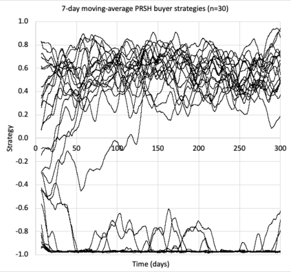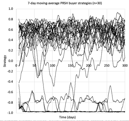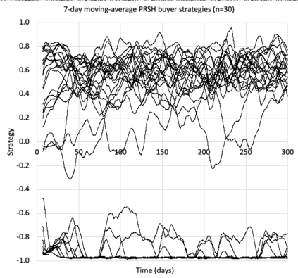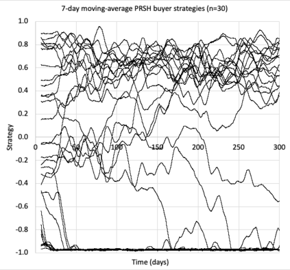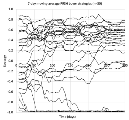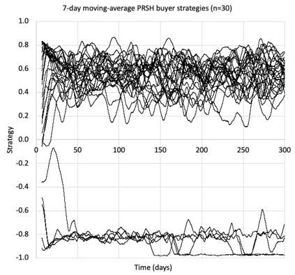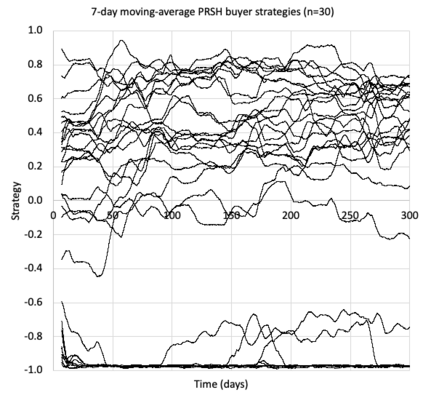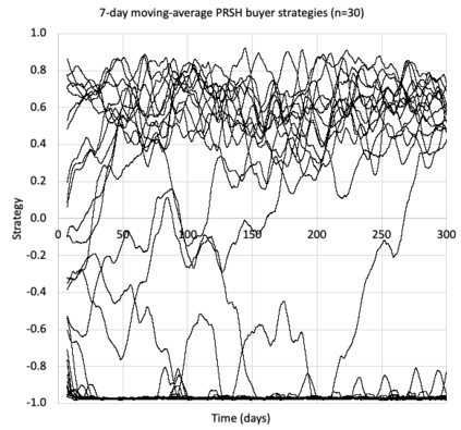 翻译:我引入了一种新型的零情报交易员, 用于模拟连续双重拍卖市场动态的研究。 像 Gode & Sunder 的经典 ZIC 交易员一样, PRZI 从某些特定允许报价域的随机分配中产生报价。 与 ZIC 不同的是, PZI 交易员使用统一分配来产生价格, PRZI 交易员的概率分布被参数化了, 其概率质量功能是由一个在范围[- 1.0, +1.0] 上的真实价值控制变量决定的。 这决定了该交易员的汇率。 当 s=0, PRZI 交易员的报价价格是同ZIC 一样的, 而 PZI 交易员的PMF 最有可能被一个极端或另一个价格等级的汇率扭曲, 从而使得其价格更加紧迫, 偏偏向或偏向另一个不同的价格交易额, 交易员的汇率分布在交易员的直径或偏向或偏向一个不同的交易员, 交易员的汇率战略在交易时值上不断调整。