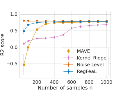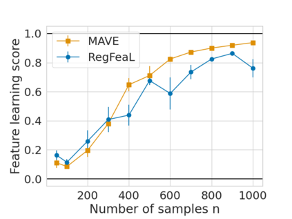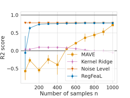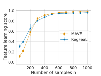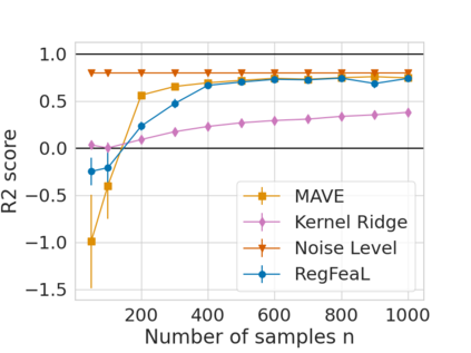 Representation learning plays a crucial role in automated feature selection, particularly in the context of high-dimensional data, where non-parametric methods often struggle. In this study, we focus on supervised learning scenarios where the pertinent information resides within a lower-dimensional linear subspace of the data, namely the multi-index model. If this subspace were known, it would greatly enhance prediction, computation, and interpretation. To address this challenge, we propose a novel method for linear feature learning with non-parametric prediction, which simultaneously estimates the prediction function and the linear subspace. Our approach employs empirical risk minimisation, augmented with a penalty on function derivatives, ensuring versatility. Leveraging the orthogonality and rotation invariance properties of Hermite polynomials, we introduce our estimator, named RegFeaL. By utilising alternative minimisation, we iteratively rotate the data to improve alignment with leading directions and accurately estimate the relevant dimension in practical settings. We establish that our method yields a consistent estimator of the prediction function with explicit rates. Additionally, we provide empirical results demonstrating the performance of RegFeaL in various experiments.