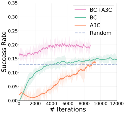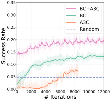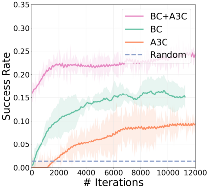 翻译:我们从语言投入中为长期规划角度的导航学习政策提出了一个模块化方法。我们的等级政策在多个时间尺度上运作,高级总体政策提出次级目标,由专门的次级政策执行。我们对子目标的选择是构成和语义性的,即可以在任意命令中相继结合,并假定人的解释性描述(例如“出场室”、“精密厨房”、“精密冰箱”等)。我们利用模仿学习,在等级层次的每个层次上制定温暖的启动政策,大大提高抽样效率,然后是强化学习。各级的独立强化学习使次政策能够适应其行动的后果并从错误中恢复过来。随后的联合等级培训使主政策能够适应次级政策。关于Hous3D(Wu等人等人等人,2018年)中具有挑战性的 EQA(Das等人,2018年)基准,要求通航现实的室内环境多样化,我们的方法在导航和问题解答两方面都比先前的工作有很大的距离。