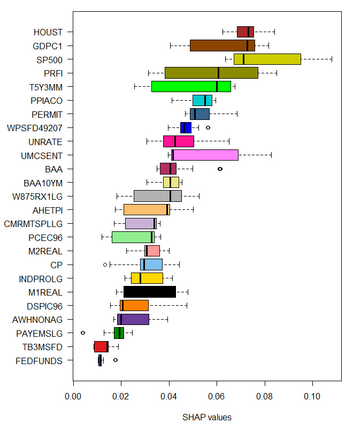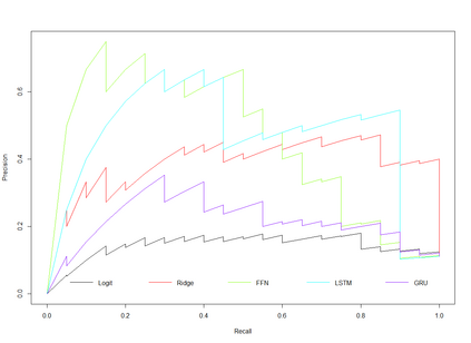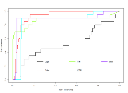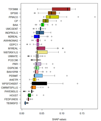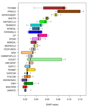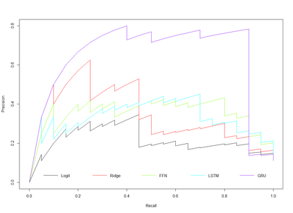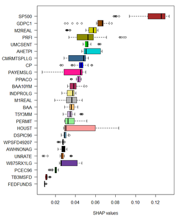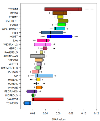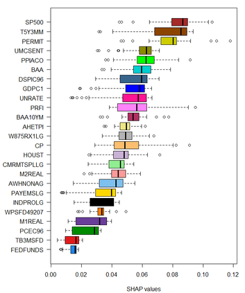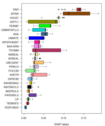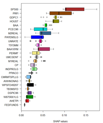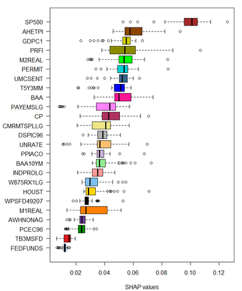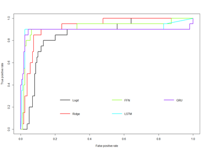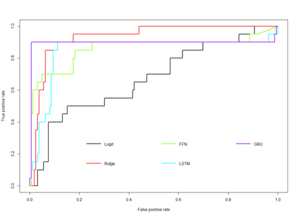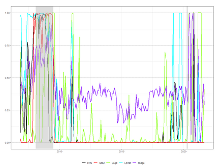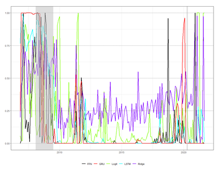 Feedforward neural network (FFN) and two specific types of recurrent neural network, long short-term memory (LSTM) and gated recurrent unit (GRU), are used for modeling US recessions in the period from 1967 to 2021. The estimated models are then employed to conduct real-time predictions of the Great Recession and the Covid-19 recession in US. Their predictive performances are compared to those of the traditional linear models, the logistic regression model both with and without the ridge penalty. The out-of-sample performance suggests the application of LSTM and GRU in the area of recession forecasting, especially for the long-term forecasting tasks. They outperform other types of models across 5 forecasting horizons with respect to different types of statistical performance metrics. Shapley additive explanations (SHAP) method is applied to the fitted GRUs across different forecasting horizons to gain insight into the feature importance. The evaluation of predictor importance differs between the GRU and ridge logistic regression models, as reflected in the variable order determined by SHAP values. When considering the top 5 predictors, key indicators such as the S\&P 500 index, real GDP, and private residential fixed investment consistently appear for short-term forecasts (up to 3 months). In contrast, for longer-term predictions (6 months or more), the term spread and producer price index become more prominent. These findings are supported by both local interpretable model-agnostic explanations (LIME) and marginal effects.