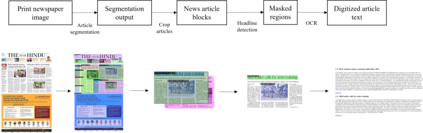 翻译:每日获取新闻内容对于印刷缺陷的人来说,包括盲人和低视率的人来说,仍是一个巨大的挑战,因为印刷内容不透明,并且受到在线来源的阻碍。在本文中,我们提出我们的方法,将印刷报纸数字化为一种无障碍的文件格式,例如HTML。我们使用一个实例分解和检测框架来进行报纸布局分析,然后由OCR来识别头条和文章文本等文本要素。此外,我们提议为Mask-RCNN框架提供EdgeMask损失功能,以改善分解蒙面的界限,从而改进下游OCR任务的准确性。我们经常地表明,我们拟议的损失功能将新闻文章文本的文字错误率降低32.5%。
