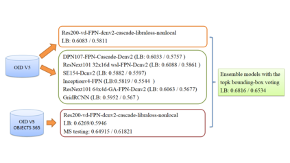 We present an object detection framework based on PaddlePaddle. We put all the strategies together (multi-scale training, FPN, Cascade, Dcnv2, Non-local, libra loss) based on ResNet200-vd backbone. Our model score on public leaderboard comes to 0.6269 with single scale test. We proposed a new voting method called top-k voting-nms, based on the SoftNMS detection results. The voting method helps us merge all the models' results more easily and achieve 2nd place in the Google AI Open Images Object Detection Track 2019.
