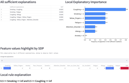 翻译:为了解释任何模型的决定,我们扩展了概率充分解释的概念(P-SE) 。 对于每一种情况,这个方法都选择了最起码的特征子集,这些特征足以产生高概率的同一预测,同时删除其他特征。P-SE的柱石是计算维持同一预测的有条件概率。因此,我们为任何数据(\boldsymbol{X},Y)采用随机森林对这一概率的准确和快速估计法,并通过对其一致性的理论分析来显示其效率。因此,我们将P-SE扩大到回归问题。此外,我们处理非分解特征,不学习$\boldsymbol{X}的分布情况,也不使用预测模型。最后,我们引入基于P-SE的基于当地规则的回归/分类解释,并比较我们的方法w.r.t其他可解释的AI方法。这些方法可以作为Python 包在 www.github.com/salimamou/acv00}。
