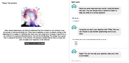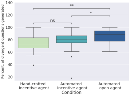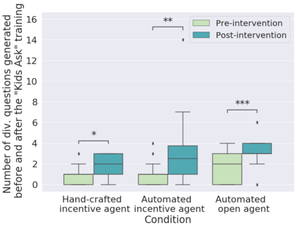翻译:学生询问好奇问题的能力是提高学习过程的关键技能。 为了培训这一技能, 先前的研究使用了一个对话工具, 提出具体的提示, 以激发儿童学习过程中的好奇心。 尽管显示教学效率, 这种方法仍然有限, 因为它依赖于每个教育资源亲手生成所述提示, 这可能是一个非常漫长和昂贵的过程。 在这方面, 我们利用自然语言处理领域的进步, 并探索使用一个大型语言模型( GPT-3) 来自动生成该代理的好奇心促进提示, 以帮助儿童问更多更深的问题。 我们随后利用这项研究来调查该代理的不同好奇心促进行为。 这项研究是针对75个年龄在9至10岁之间的学生进行的, 他们要么与一个手写手写的对话工具互动, 提出“ 关闭” 手动的提示, 导致预先界定问题。 一个由GPT-3驱动的大型语言模型( GPT 3 ) 提出同样的提示, 或者由GPT-3 驱动的“ 开启” 提示, 可以导致几个可能的问题。 结果显示一个类似的问题在儿童中间的“ 学习 G- PT 的结果 ” 。