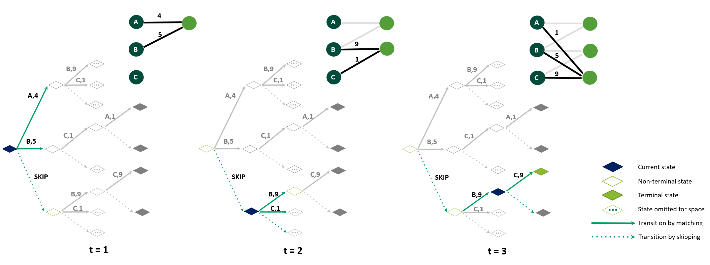 翻译:广泛适用的在线匹配问题的挑战在于在未来投入不确定的情况下作出不可撤销的指定。 多数基于理论上的政策是短视的或贪婪的。 在经常重复匹配程序的实际应用中, 基本数据的分配可以用来更好地决策。 我们提出了一个端到端的强化学习框架, 以便根据历史数据的试验和测试得出更好的匹配政策。 我们设计了一套神经网络结构, 设计特征演示, 并用经验来评估这两类在线匹配问题: Edge- Weighted 在线双向匹配和在线子模块双向匹配。 我们显示,大多数学习方法比四个合成和真实世界数据集的经典基线算法表现得始终好。 平均而言, 我们提议的模型在各种合成和真实世界数据集上提高了3-10%的匹配质量。 我们的代码可以在https://github.com/lyeskhalil/CORL上公开查阅。