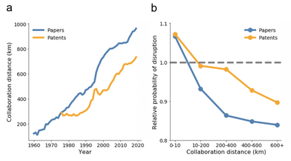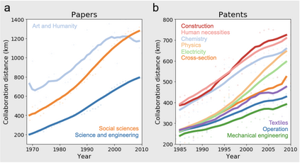 翻译:世界各地的科学家和发明家今天比以往任何时候都更加丰富和相互联系。 但是,虽然现在有更多的人发现发现,更多的想法可以以新的方式重新配置,但研究表明,新的想法越来越难找到矛盾的再组合增长理论。在本文中,我们对这一明显的难题提供了新的见解。在过去半个世纪里,分析全球各地2 000万份研究文章和400万份专利申请,我们开始记录不同地点远程合作的兴起,强调全球科学家和发明家之间日益扩大的相互联系。然而,我们也表明,在所有领域、时期和团队规模上,这些分布的团队的研究人员总是不太可能找到与其现场对应人员相比的突破性发现。使用新的数据集使我们能够探索每个团队的分工。我们发现,分布的团队成员倾向于在技术任务如收集和分析数据方面进行合作,但不太可能在概念性任务上联合起来,例如发现新的想法和设计研究。因此,尽管远程团队在理论上进行合作,但实际的合作中心在后期和团队规模上却总是越来越不可能取得突破性的发现,而这种远程项目任务则有可能产生更难以实现的知识。