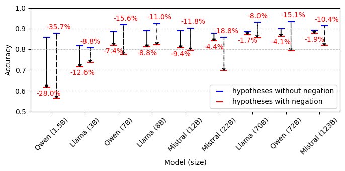 Negations are key to determining sentence meaning, making them essential for logical reasoning. Despite their importance, negations pose a substantial challenge for large language models (LLMs) and remain underexplored. We construct two multilingual natural language inference (NLI) datasets with \textit{paired} examples differing in negation. We investigate how model size and language impact its ability to handle negation correctly by evaluating popular LLMs. Contrary to previous work, we show that increasing the model size consistently improves the models' ability to handle negations. Furthermore, we find that both the models' reasoning accuracy and robustness to negation are language-dependent and that the length and explicitness of the premise have a greater impact on robustness than language. Our datasets can facilitate further research and improvements of language model reasoning in multilingual settings.