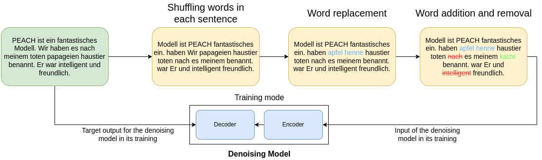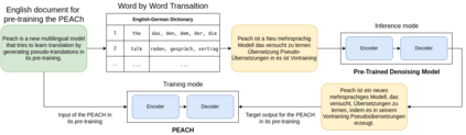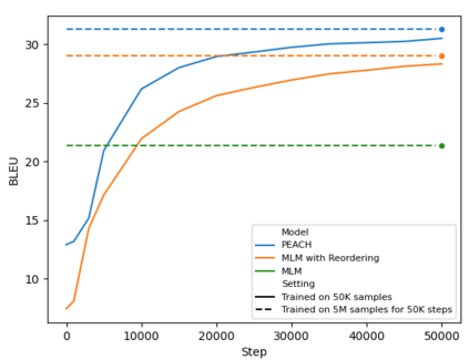 翻译:多语言预训练显著提高了许多多语言NLP任务的表现,包括机器翻译。大多数现有方法基于掩码语言建模和文本去噪函数变体,用于单语数据的多语言预训练。单语预训练忽略了许多语言对中可用的平行数据。另外,一些其他作品将可用的人工生成的平行翻译数据整合到预训练中。这种平行数据无疑是有用的,但即使在高资源语言对中也是有限的。本文介绍了一种新颖的半监督方法,SPDG,用于为多语言预训练生成高质量的伪平行数据。首先,对单语数据进行去噪的模型预训练,重排,添加,删除和替换单词,在增强预训练文档的质量。然后,我们使用字典对每个预训练文档生成不同的伪翻译,并应用预先训练的去噪模型。生成的伪平行数据随后用于预训练我们的多语言序列到序列模型 PEACH。我们的实验表明,PEACH 在各种翻译任务中,包括受监督的、零和少样本情况下,都优于现有方法用于训练mT5和mBART。此外,PEACH 在类似语言之间传递知识的能力使其特别适用于低资源语言。我们的研究结果表明,在具有高质量字典以生成准确的伪平行数据的情况下,PEACH 对于低资源语言非常有价值。