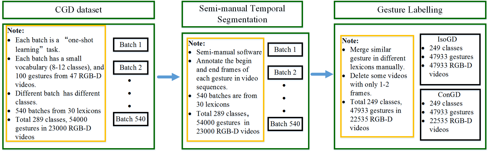 翻译:与2016年国际定型识别会议和2017年国际计算机愿景会议(ICV)同时举行的两次讲习班上,两次举办了关于大规模手势识别的挑战,吸引了全世界超过200美元的团队,这一挑战有两条轨道,分别侧重于孤立和连续的手势识别。本文介绍了建立两个基准数据集的情况,分析了基于这两个数据集的大规模手势识别的进展。我们讨论了收集大规模手势识别地面真相说明的挑战,并详细分析了目前以RGB-D视频序列为基础的大规模孤立和连续手势识别最新方法。除了作为我们以往挑战的评价指标的承认率和平均雅卡指数(MJI)之外,我们还介绍了修正的分化率(CSR)衡量标准,以评价持续手势识别的时间分解性表现。此外,我们建议采用双向短期记忆(BI-LSTM)基线方法,确定基于C-LS1美元基点的远程识别分点,以RGB-D视频顺序为基础,用C-SLSAF1的绝对方法展示了BI-RAS1号模型。