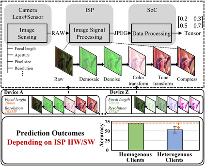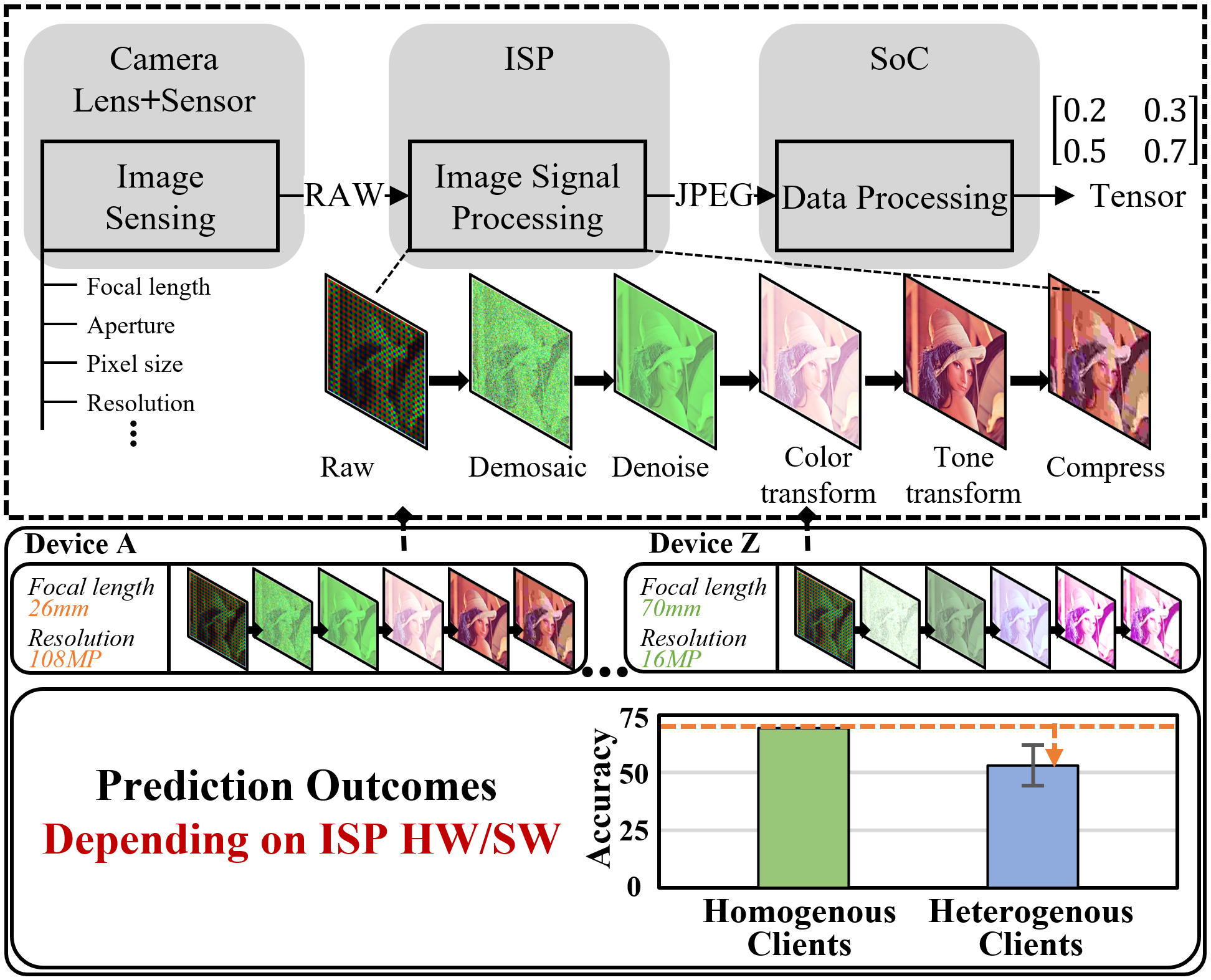 Federated Learning (FL) is a practical approach to train deep learning models collaboratively across user-end devices, protecting user privacy by retaining raw data on-device. In FL, participating user-end devices are highly fragmented in terms of hardware and software configurations. Such fragmentation introduces a new type of data heterogeneity in FL, namely \textit{system-induced data heterogeneity}, as each device generates distinct data depending on its hardware and software configurations. In this paper, we first characterize the impact of system-induced data heterogeneity on FL model performance. We collect a dataset using heterogeneous devices with variations across vendors and performance tiers. By using this dataset, we demonstrate that \textit{system-induced data heterogeneity} negatively impacts accuracy, and deteriorates fairness and domain generalization problems in FL. To address these challenges, we propose HeteroSwitch, which adaptively adopts generalization techniques (i.e., ISP transformation and SWAD) depending on the level of bias caused by varying HW and SW configurations. In our evaluation with a realistic FL dataset (FLAIR), HeteroSwitch reduces the variance of averaged precision by 6.3\% across device types.
