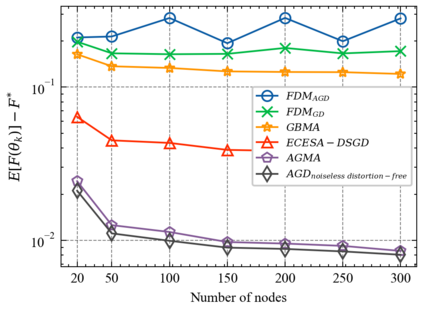 翻译:我们认为,无线网络中存在着分布式学习问题,包括N分布式边缘装置和一个参数服务器(PS)。客观功能是边缘装置当地损失功能的总和,目的是通过多个接入频道(MAC)与PS沟通来训练一个共同模式。这个问题吸引了对分布式遥感系统的兴趣,以及最近对联结学习的兴趣,即所谓的超天计算。在本文中,我们开发了一个新型的加速渐渐白多重访问算法(AGMA)算法,该算法使用以动力为基础的梯度信号超过超音速淡化的MAC来提高与现有方法相比的趋同率。此外,AGMA并不要求权力控制或成型来取消淡化效应,这种效应会简化执行的复杂性。我们从理论上分析AGMA,并将错误的有限缩略图与Lipschitz梯度联系起来。在强烈的 convex案中,我们显示AGMA随着网络的增加而接近最著名的线性趋同率。在 convex案中,我们展示了AGMA目前采用真实的模版数据模拟方法,以更好地展示目前的数据趋同率。