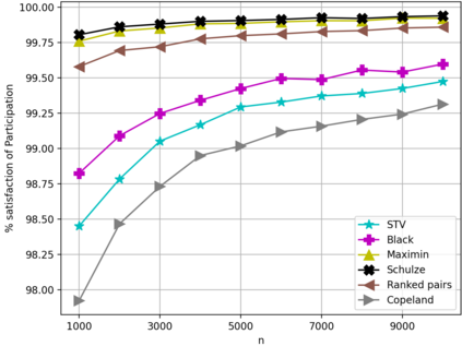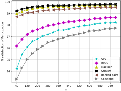 翻译:我们着手全面了解表决法的顺利满意度,为比较投票规则提供一个更精细、更现实的基础。我们采用平滑的社会选择框架,让对手任意选择代理人的“地面真相”偏好,并增加随机噪音。我们着重说明两个经过认真研究的投票法的顺利满意度: Condorcet 标准和参与。我们证明,对于任何固定数量的替代方案,如果选民人数足够多,那么,在相当大范围内的投票规则下,Condorcet标准的顺利满意度是1美元、1美元-ex(-theta(n))美元、1美元/theta(n)-0.5})美元、1美元/ex(-theta(n))美元、1美元/theta(n)美元),或在同一时间是$\theta(1)美元和1\Theta(1)美元。我们证明,对于参与的顺利满意度为1美元/Theta(n)-0.5美元。1994年Berg和Lepelley在一系列投票规则下对结果的公开回答是比标准更高的关切。