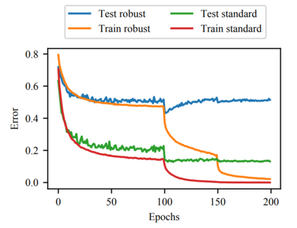 Adversarial training is a widely used method to improve the robustness of deep neural networks (DNNs) over adversarial perturbations. However, it is empirically observed that adversarial training on over-parameterized networks often suffers from the \textit{robust overfitting}: it can achieve almost zero adversarial training error while the robust generalization performance is not promising. In this paper, we provide a theoretical understanding of the question of whether overfitted DNNs in adversarial training can generalize from an approximation viewpoint. Specifically, our main results are summarized into three folds: i) For classification, we prove by construction the existence of infinitely many adversarial training classifiers on over-parameterized DNNs that obtain arbitrarily small adversarial training error (overfitting), whereas achieving good robust generalization error under certain conditions concerning the data quality, well separated, and perturbation level. ii) Linear over-parameterization (meaning that the number of parameters is only slightly larger than the sample size) is enough to ensure such existence if the target function is smooth enough. iii) For regression, our results demonstrate that there also exist infinitely many overfitted DNNs with linear over-parameterization in adversarial training that can achieve almost optimal rates of convergence for the standard generalization error. Overall, our analysis points out that robust overfitting can be avoided but the required model capacity will depend on the smoothness of the target function, while a robust generalization gap is inevitable. We hope our analysis will give a better understanding of the mathematical foundations of robustness in DNNs from an approximation view.