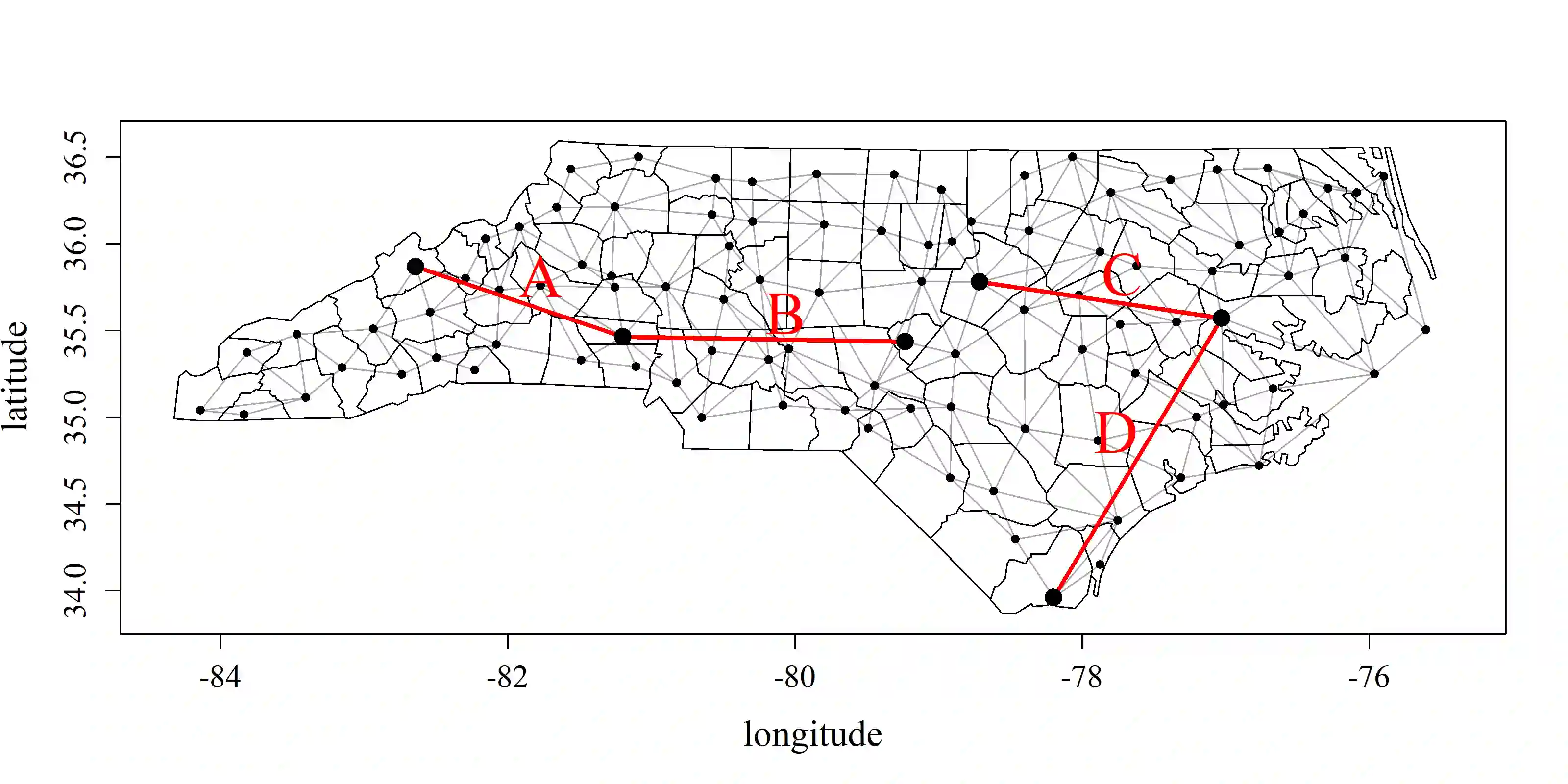 翻译:空间数据可以显示依赖性结构的复杂程度, 而不是使用依靠传统的定点和偏移假设的模型来表示。 已经开发了几种统计方法来放松这些假设。 特别是, “ 空间变形方法” 定义了从观测数据的地理空间向一个潜在空间的转变, 即从观察数据的地理空间到假设的静止和异质的表面空间。 从这一类模型的灵感, 我们为在图表上观测的空间依赖性数据开发了一个新的模型。 我们的方法意味着将图形嵌入欧西里德空间, 从而使用传统的常态功能, 如Mat\\\ { { { { } 家族的函数, 来模拟共变异性。 这是通过与这种共变函数相兼容的图形测量尺度的一组图形空间空间空间空间空间空间空间空间空间空间空间空间空间空间。 我们通过估算这些模型的边际重量, 可以恢复图表节点之间的“ ” 。 我们的模型和现有空间依赖性图形数据, 主要是有条件的自动递增( CAR) 模型及其变方, 说明我们的方法优于传统方法的优势。 我们的模型和空间物种和竞争者在鸟类分布中找到了我们的最佳模型和空间数据。