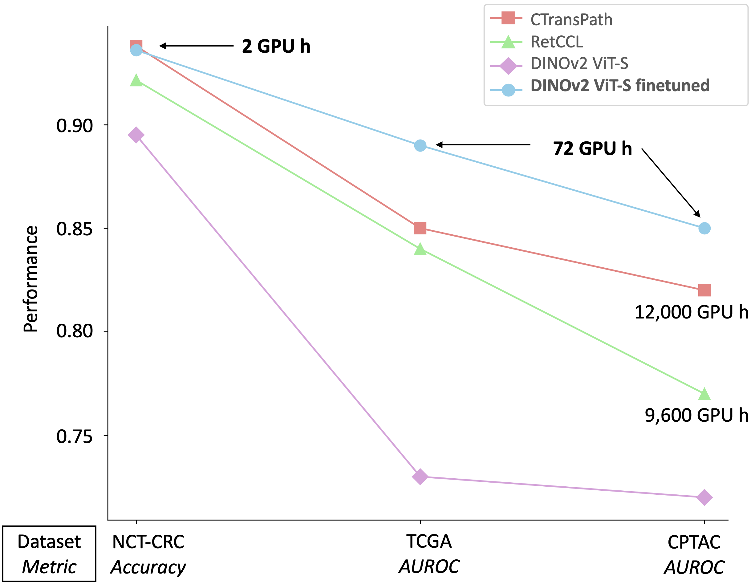 To handle the large scale of whole slide images in computational pathology, most approaches first tessellate the images into smaller patches, extract features from these patches, and finally aggregate the feature vectors with weakly-supervised learning. The performance of this workflow strongly depends on the quality of the extracted features. Recently, foundation models in computer vision showed that leveraging huge amounts of data through supervised or self-supervised learning improves feature quality and generalizability for a variety of tasks. In this study, we benchmark the most popular vision foundation models as feature extractors for histopathology data. We evaluate the models in two settings: slide-level classification and patch-level classification. We show that foundation models are a strong baseline. Our experiments demonstrate that by finetuning a foundation model on a single GPU for only two hours or three days depending on the dataset, we can match or outperform state-of-the-art feature extractors for computational pathology. These findings imply that even with little resources one can finetune a feature extractor tailored towards a specific downstream task and dataset. This is a considerable shift from the current state, where only few institutions with large amounts of resources and datasets are able to train a feature extractor. We publish all code used for training and evaluation as well as the finetuned models.