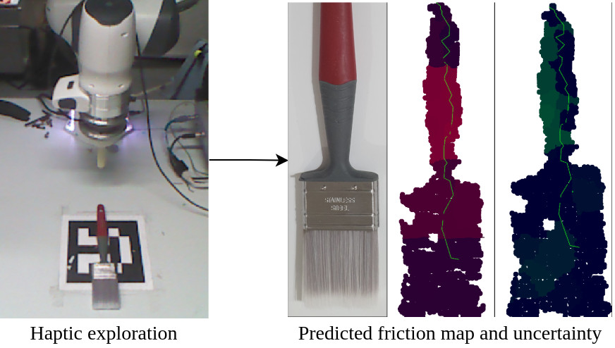 翻译:精确地模拟物体的当地表面特性对于从捕捉到物质识别等许多机器人应用至关重要。表面特性,例如摩擦,虽然难以估计,但表面特性,因为对物体的视觉观察不能传达足够的关于这些特性的信息。相反,偶然勘探耗时,因为它只提供与物体勘探部分有关的信息。在这项工作中,我们提议了一个共同的相对偏差物体模型,通过利用视觉和机能信息的相关性,以及机器人臂的有限偶然探索,来估计整个物体的表面摩擦系数。我们通过显示其能够估计一系列实际多物质物体上不同的摩擦系数,来证明拟议方法的有效性。此外,我们说明估计的摩擦系数如何通过引导一个牵引机规划员到高摩擦区来提高成功率。