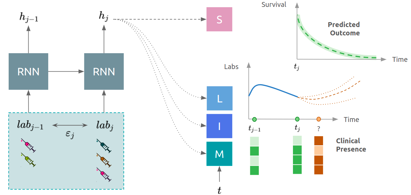 翻译:医学观察数据是病人和保健系统之间复杂互动的结果。抽样过程往往极不规律,本身就是一个信息过程。当使用这些数据来开发预测模型时,这种现象往往被忽视,导致在做法演变时模型的性能和普遍性低于最佳水平。我们建议建立一个多任务经常性神经网络,在生存结果的同时,以临床存在的三个层面 -- -- 即纵向、观察间和缺失过程 -- -- 为模型。在利用MIMIMIC III实验室试验进行的预测任务中,对这三个过程进行明确的模拟表明,与最先进的预测模型(一天的C-索引:0.878)相比,其性能有所改善。更重要的是,拟议的方法更能改变临床存在环境,这表现在周日和周末接受的病人之间的性能比较中。这一分析表明,必须研究和利用临床存在来改进性能和创造更可移动的临床模型。