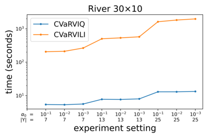 翻译:斯托卡最短路径( SSP) 问题模型( SSP), 代理商必须在最小化成本功能的同时追求一个目标, 稳定连续决定问题。 由于概率动态, 它希望具有成本功能来考虑风险。 风险中条件值( CVaR) 是一个标准, 可以通过考虑微小的美元和美元等更差的轨迹来构建任意风险水平。 虽然最佳政策是非马可维值, 但CVAR- SSP的解决方案可以找到与价值透析法( 数值基值) 的算法相近的解决方案, 比如 CVAR 价值递升算法( CVRVIQ) 和 CVAR 值透算法( CVR- SSP 算法) 等基于价值透析法的算法( CVR- Slationalationalational 运算法( CVRR- Splationalationalation) 的算法( 值), 这些算法的参数只能用来比CVR- Sqlational 的算法( 运算法), 这些算法的算法是一个新的算法, 这些算法的比CForlation 成本政策更接近一个成本。</s>