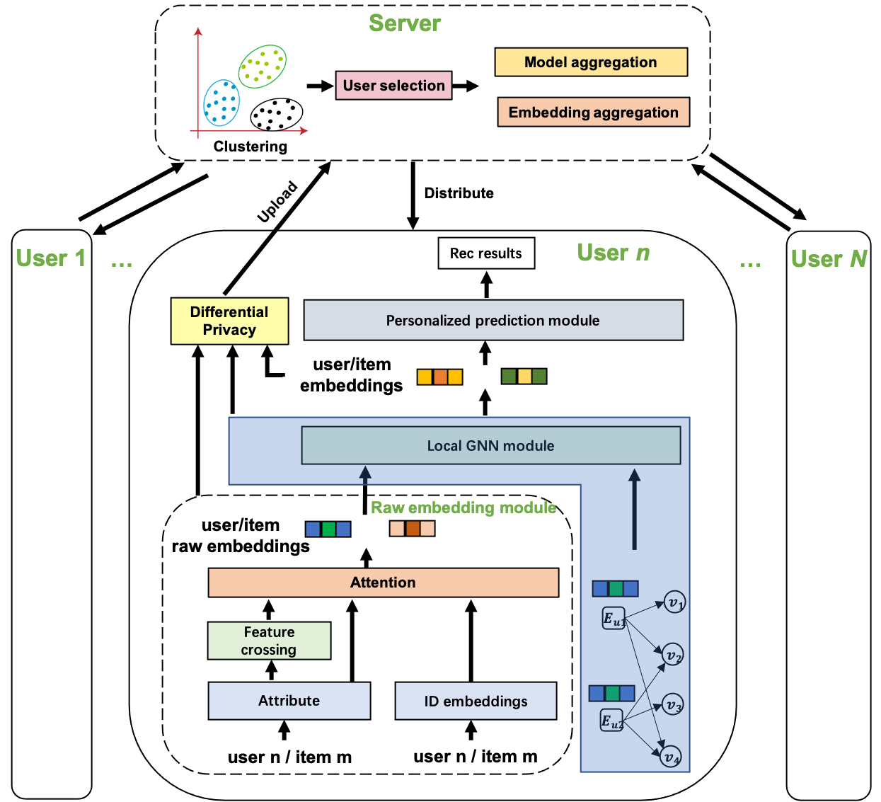 翻译:联邦建议采用建议系统中的联邦学习技术,通过在用户装置和中央服务器之间交换模型,而不是原始用户数据,来帮助保护用户隐私。由于用户属性和本地数据的多样性,实现个性化模型对于帮助改进联邦建议性能至关重要。在本文件中,我们建议通过联合代表学习、用户群组合和模式调整,建立一个基于图形神经网络个人化联邦建议(PerFedRec)框架。具体地说,我们构建了一个协作图表,并纳入属性信息,以便通过一个联合GNN联合学习代表。基于这些学习的表述,我们将用户分组成不同的用户群,并学习每个组的个性化模型。然后,每个用户通过将全球联邦模式、集级联邦模式和用户的微调本地模型结合起来,学习个性化模型。为了减轻沉重的通信负担,我们明智地从每个组中挑选了几个有代表性的用户(而不是随机挑选的用户)参加培训。在现实世界数据集的实验中显示,我们提议的方法比现有方法更优秀。