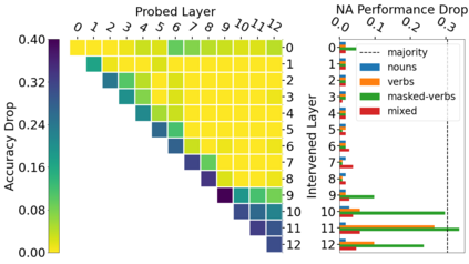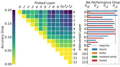 翻译:试探的核心探索是找出经过培训的模型如何在其演示中将语言属性编码成语言属性。 但是, 编码可能是虚假的, 也就是说, 模型在作出预测时可能不会依赖它。 在本文中, 我们试图找到模型实际使用的编码, 引入基于使用的研究设置 。 我们首先选择不使用语言属性就无法解决的行为性任务 。 然后, 我们试图通过干预模型的演示来清除该属性 。 我们争论说, 如果模型使用编码, 它的去除会损害所选行为任务的性能。 作为案例研究, 我们侧重于 BERT 编码的语法编号, 以及它如何使用编码来解决数字协议任务 。 我们实验地发现, BERT 依赖一个直线的语法编号编码来生成正确的行为性输出 。 我们还发现, BERT 使用一个单独的编码, 用于名词和动词的语法编号。 最后, 我们发现, 在哪个层次的语法数字信息从无到头转移。