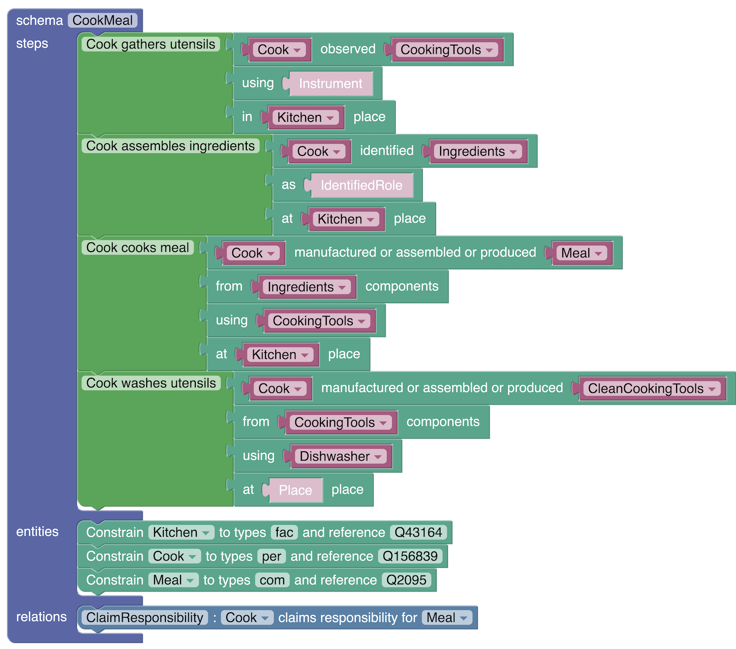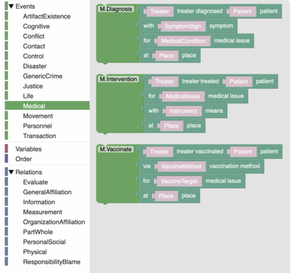 翻译:事件图案是一种结构化的知识来源,它界定了典型的现实世界情景(例如,前往机场),我们提出了一个框架,以便根据一个新颖的脚本上岗系统和一个精心设计的界面,使非专家能够“编程”复杂事件结构,高效率地建造一个图案图书馆,我们为此推出了一个图案图书馆:一个232个详细事件图案的机器可读资源,每个图案都描述了一个不同的典型图案,即其相关的次活动结构(情景中发生的情况)、参与者(在情景中发挥作用)、每个参与者的精细打字以及他们之间隐含的关系限制。我们把我们的图案图书馆和SchemaBlocks接口在线提供。