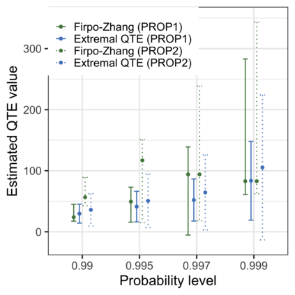 翻译:极端事件的因果推断在气候科学、医学和经济学等领域有许多潜在用途。我们研究二元治疗对连续、重尾结果的极端微量处理效应。现有方法仅限于在观察范围以内关注量的个案。然而,风险评估的应用方面,最相关的案例涉及超出数据范围范围的极端微量处理效应。我们引入了依赖无药性尾巴近似的极端微量处理效应估计器,并使用新的因果山丘估计器来计算潜在结果分布的极端价值指数。我们建立了估计值的无症状常态,并提出一致的差异估计器,以得出有效的统计推理。我们用模拟研究方法的性能,并将其应用于一套真实的数据中,用以估计大学教育对工资的极端微量处理效应。