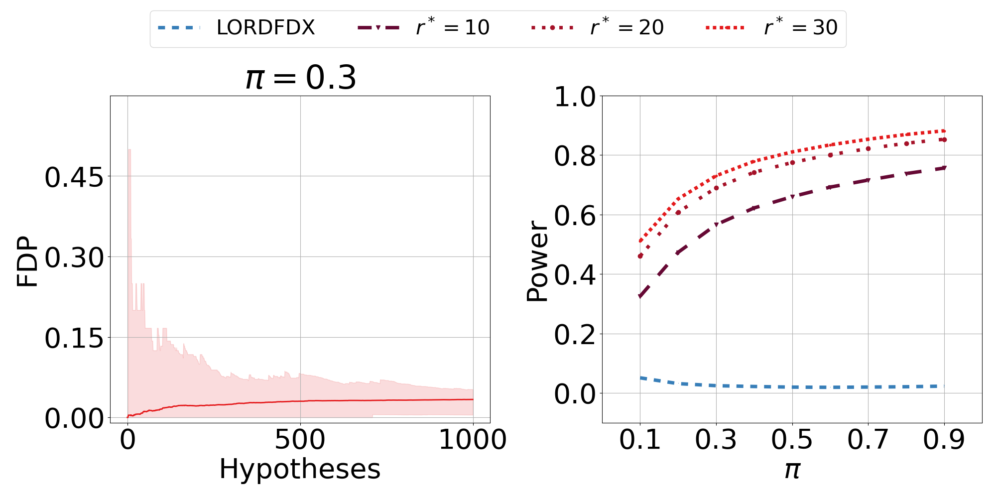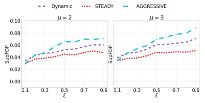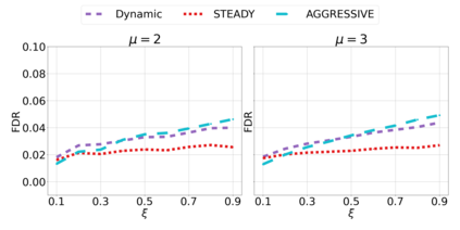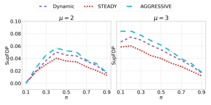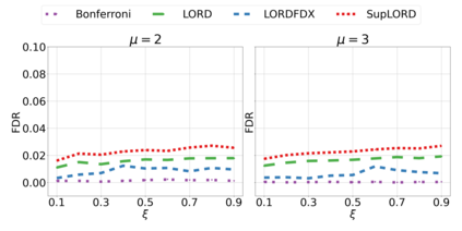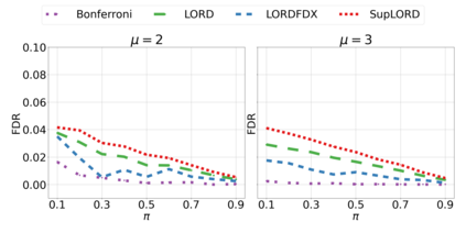 翻译:我们为在线多次测试推出新的算法,这些算法可以控制虚假的发现超量(FDX),同时取得比以往方法更大的能量级。这种统计进步是由新的算法理念的发展促成的:早期算法更“静态”而我们的新算法允许根据算法积累的财富量动态调整测试水平。我们证明我们的算法在各种合成实验中获得了更高的能量。我们还证明SupLORD可以为FDR和FDX提供错误控制,并在停止时控制FDR。 停止时间特别重要,因为它们允许实验者在保持对FDR的预期控制的同时尽早任意结束实验。 SupLORD是第一个在网络设置的停止时间控制FDR的非三轨算法,据我们所知,它是第一个能够控制FDR的在线设置中的非三角算法。